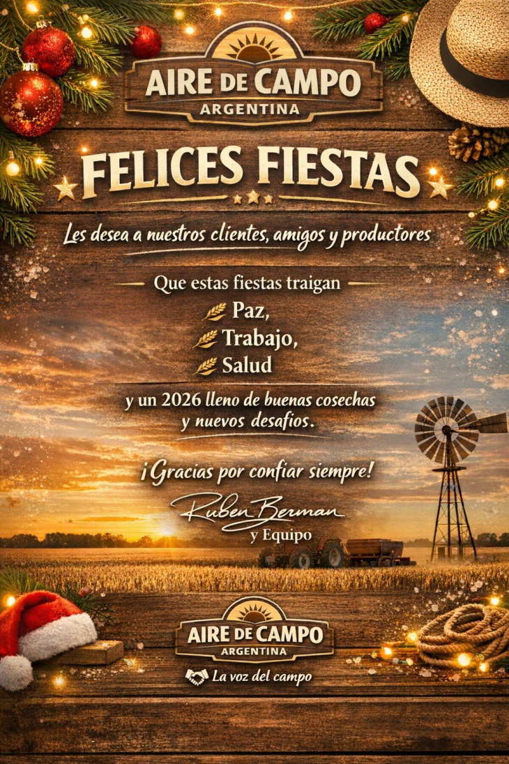 Desde Aire de Campo Argentina, celebramos un nuevo año apostando a la unión, al desarrollo sustentable y al fortalecimiento del agro como base del progreso nacional. Renovamos nuestro acompañamiento y reconocimiento a cada hombre y mujer del campo que, con pasión y sacrificio, hacen grande a la Argentina.