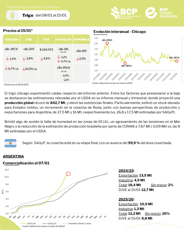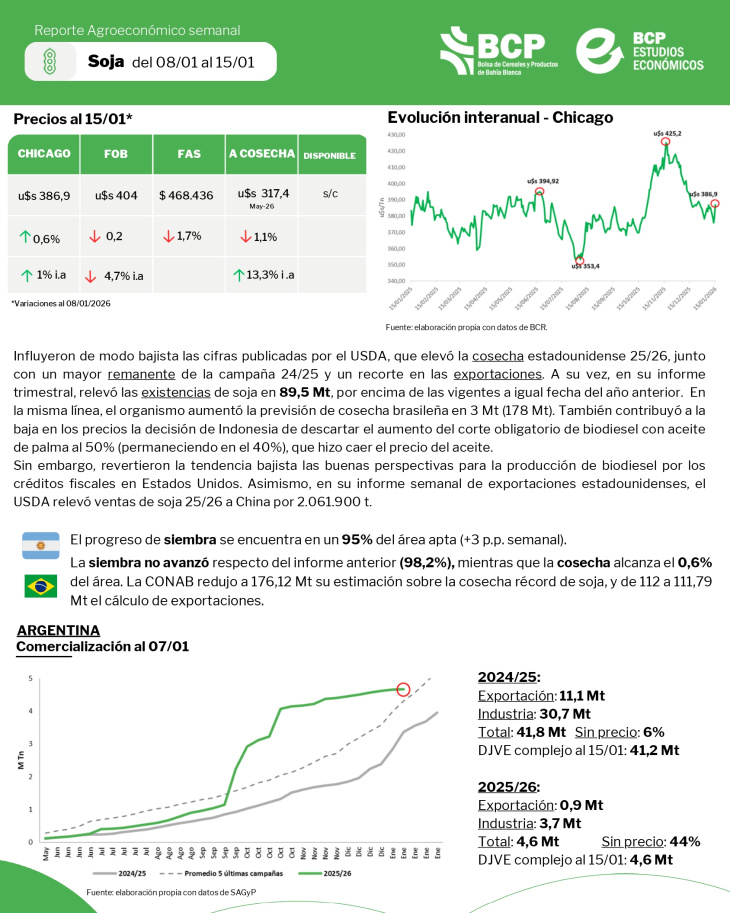 Conocé todos los datos de los cultivos y mercados de la última semana! Del 08 al 15 de enero.