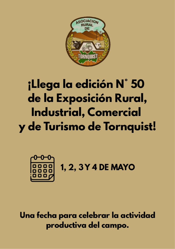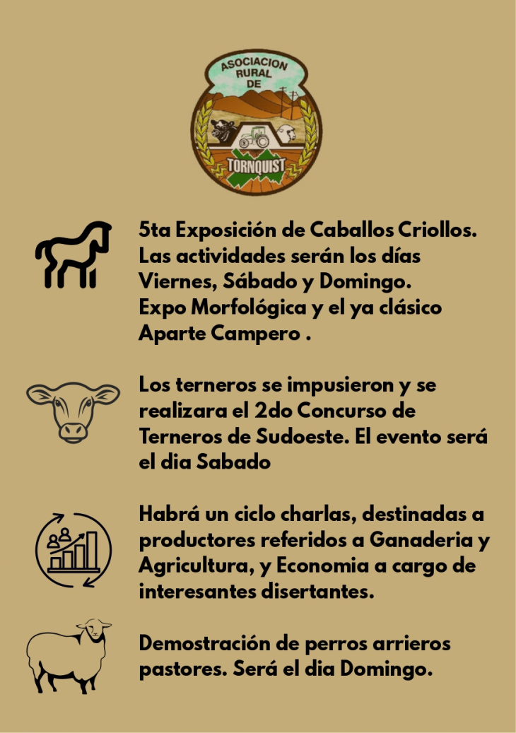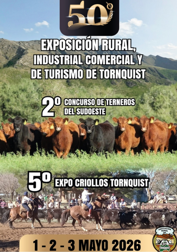12:12 |50° EXPOSICIÓN RURAL, INDUSTRIAL COMERCIAL Y DE TURISMO DE TORNQUIST, 2° CONCURSO DE TERNEROS DEL SUDOESTE y 5° EXPO CRIOLLOS TORNQUIST, 1 - 2 - 3 MAYO 2026